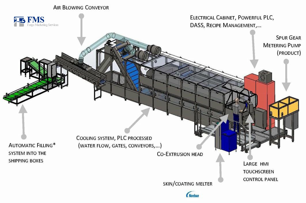 USUAL VISCOSITY RANGE AT THE CO-EXTRUSION HEAD (CPS – MPAS) 3.000 TO 70.000 CPS –MPAS (LOWER AND HIGHER VISCOSITIES ARE ALSO POSSIBLE :PLEASE CONTACT US)