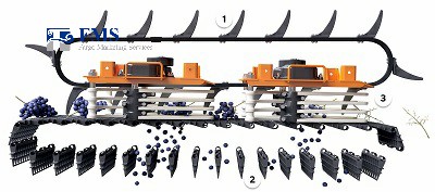 在地面上没有损失市场上最长最低的接收盘(2.5米) 收获效率和收获速度高 安装在弹性接头上的捕手托盘: - 限制葡萄藤的张力(开放角度) - 延长盘子的使用寿命 - 指导传送带上的浆果 - 保证密封 |